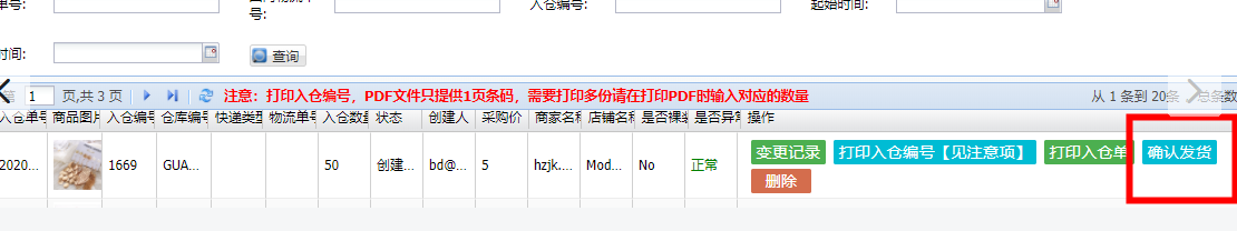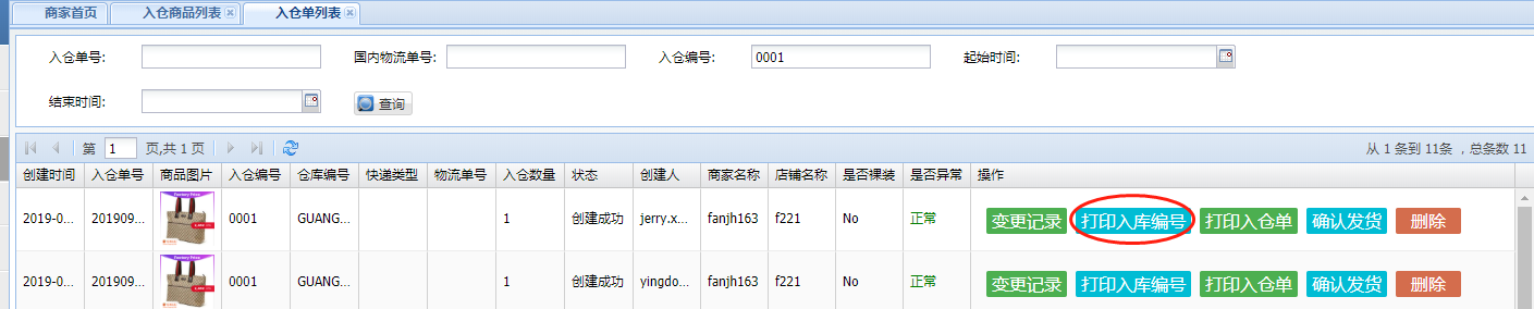 1、运营申请入仓编号之后并通知商家,便可查询入仓编号并安排包装及发货