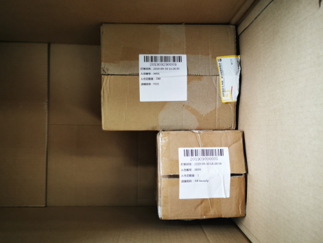 一个快递箱中如果需要装有多个【入仓编号】的商品,则需在该快递箱外部张贴内含的多个【入仓编号】商品对应的【入仓单】标签,同时在内含的每类商品需有独立且封箱完整的小包裹封装,且小包裹上也许贴上其内部对应的【入仓单】标签。