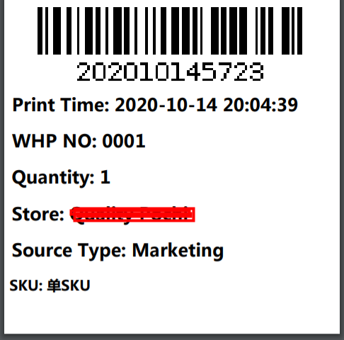 商家需要使用标签打印机打印出系统中提供的【入仓编号】,打印出的标签上面的入仓编号数字和条码必需清晰可见,商家可自行选择符合便于张贴的标签纸进行打印。