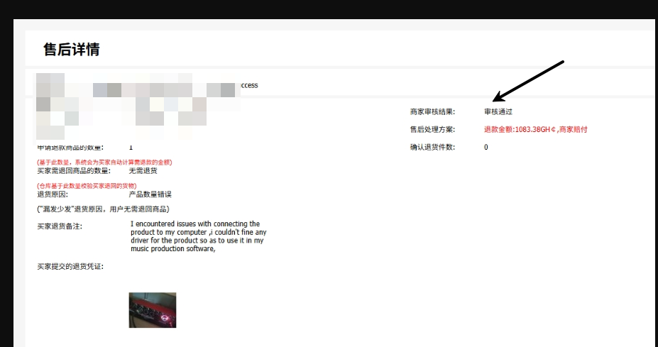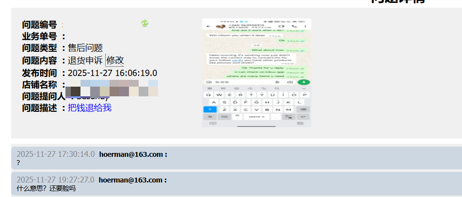 正确反馈:订单号*****,因什么问题的售后,提供商家无责的相应照片或者数据,申请退回金额。
